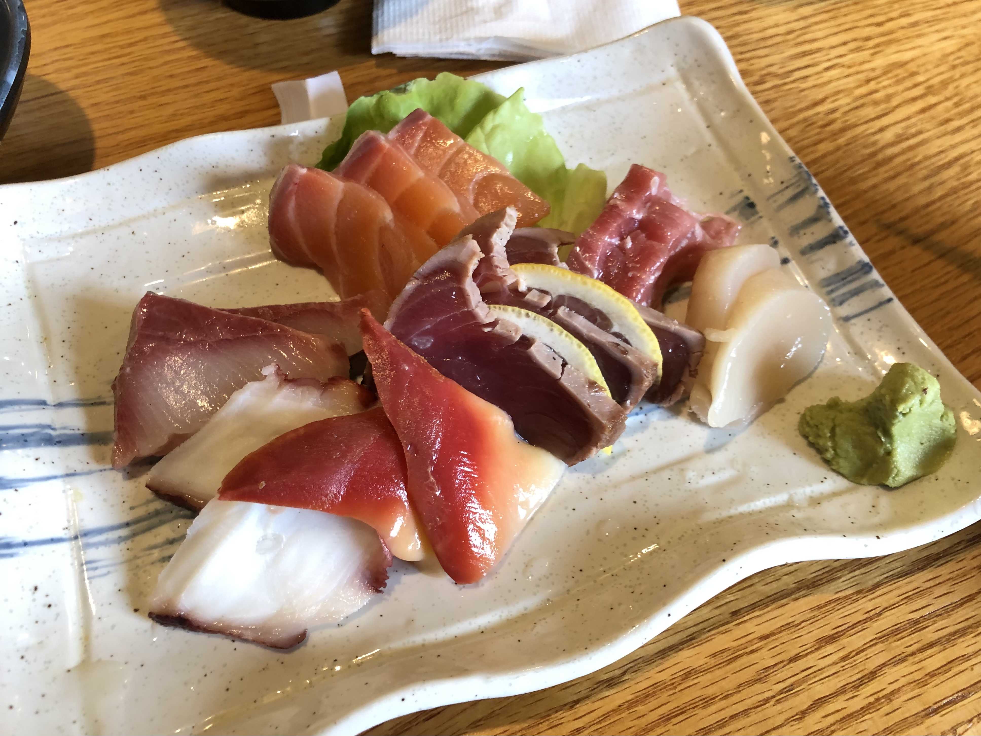 아마 치라시동이랑 가격이 비슷했나 아주 조금 더 비쌌던 걸로 기억하는데, 사시미 종류도 다양하고 하나같이 신선하게 잘 나왔다. 정말 사시미 잘 만질 줄 아는 셰프가 손질한 깔끔한 사시미. V랑 한조각씩 나눠먹다 배부르대서 내가 더 많이 먹어버림.