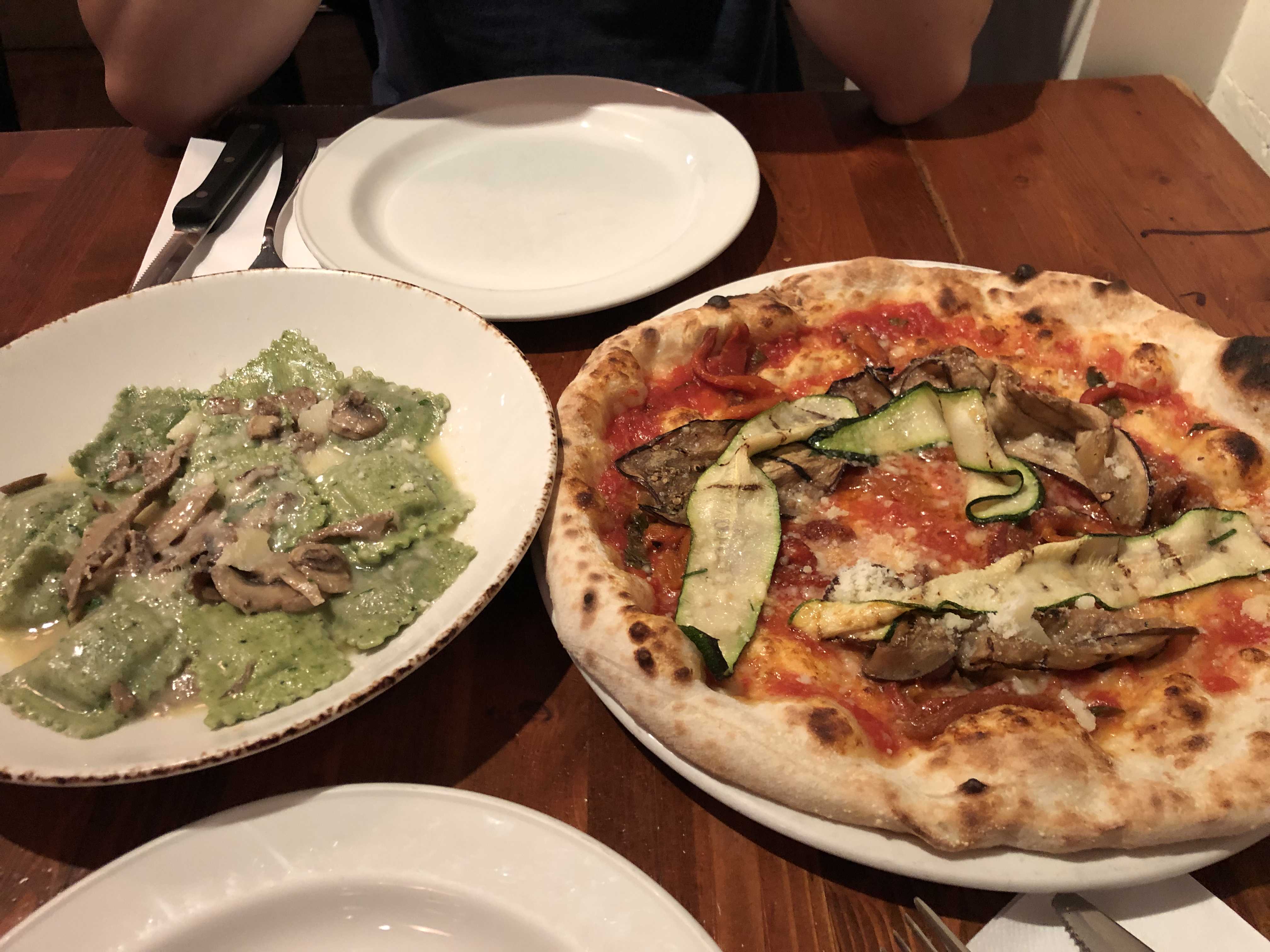 나는 씨푸드가 들어간 파스타로 고르고 싶었는데 자기는 무조건 라비올리를 시켜야겠다고 해서 서버의 추천을 받아 Duck Confit(오리 콩피)가 들어간 걸로 시켰는데 향이 너무 진해서 우리 둘 다 각자 2-3개쯤 먹고 나니 조금 질렸다.