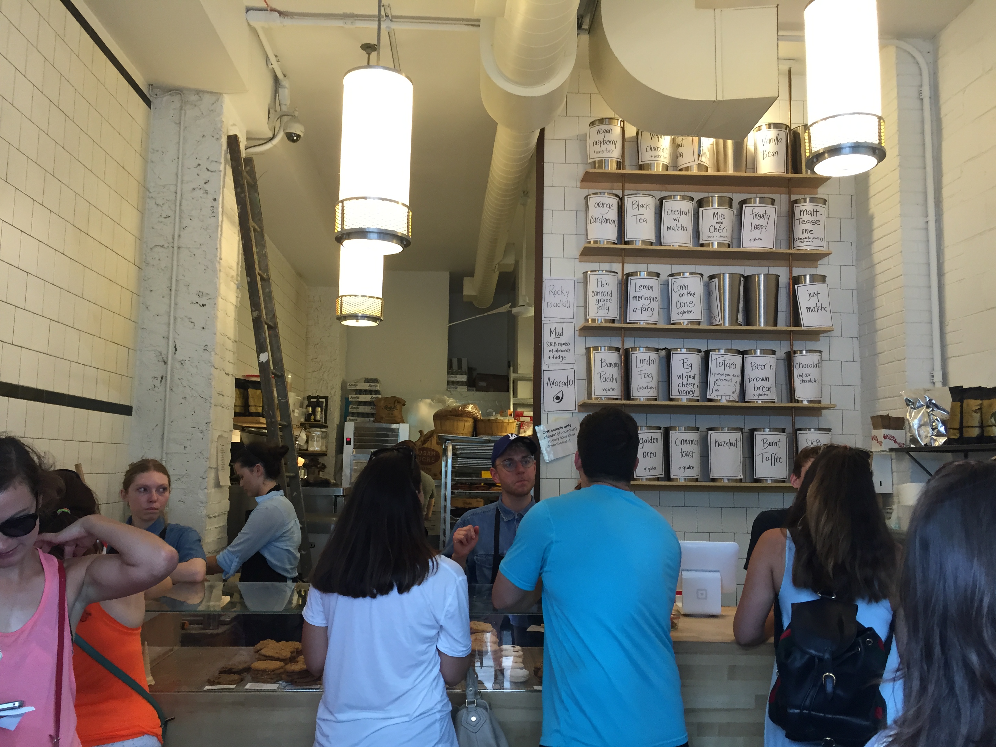 들어가 보면 왜 이렇게 줄이 길어지는지 알 수 있는데, 일단 아이스크림 고르는데 테이스팅도 할 수 있게 도와준다. 게다가 쿠키나 작은 컵이 아닌 홍콩 스타일 와플을 원할 경우 (대부분이 원함) 기다리는 시간이 길어지는데, 와플 기계가 단 2개였던 걸로 기억. 와플 굽는 속도도 무지 느리다.