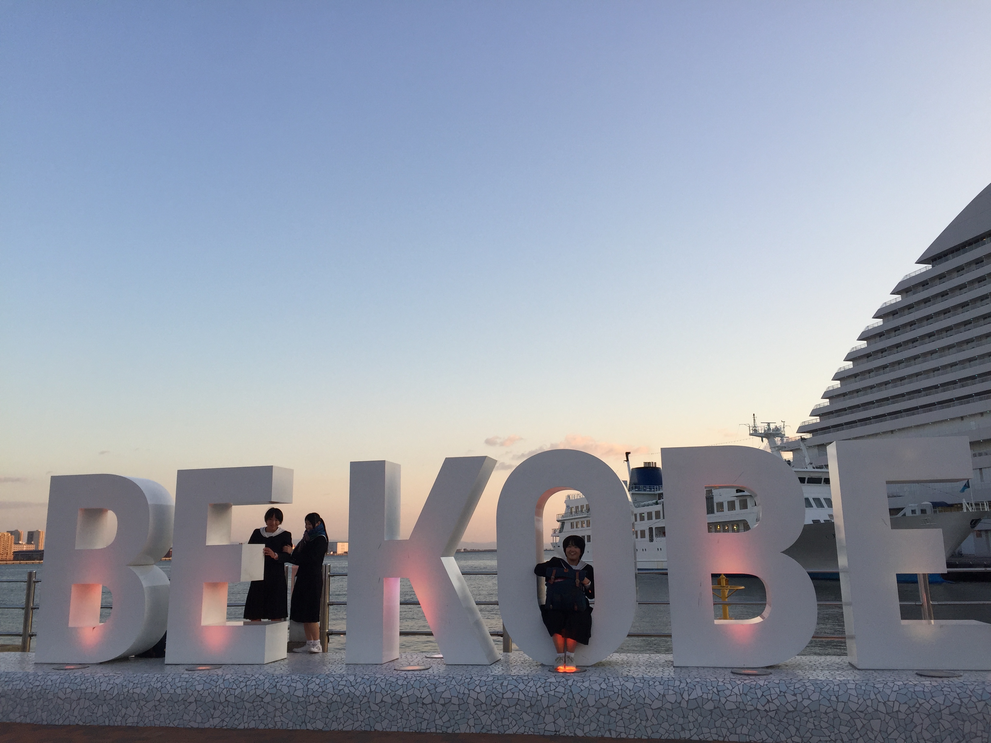 해가 저물기 시작하는 고베항. 교복을 입은 학생들이 기념사진을 찍고 있었다.
