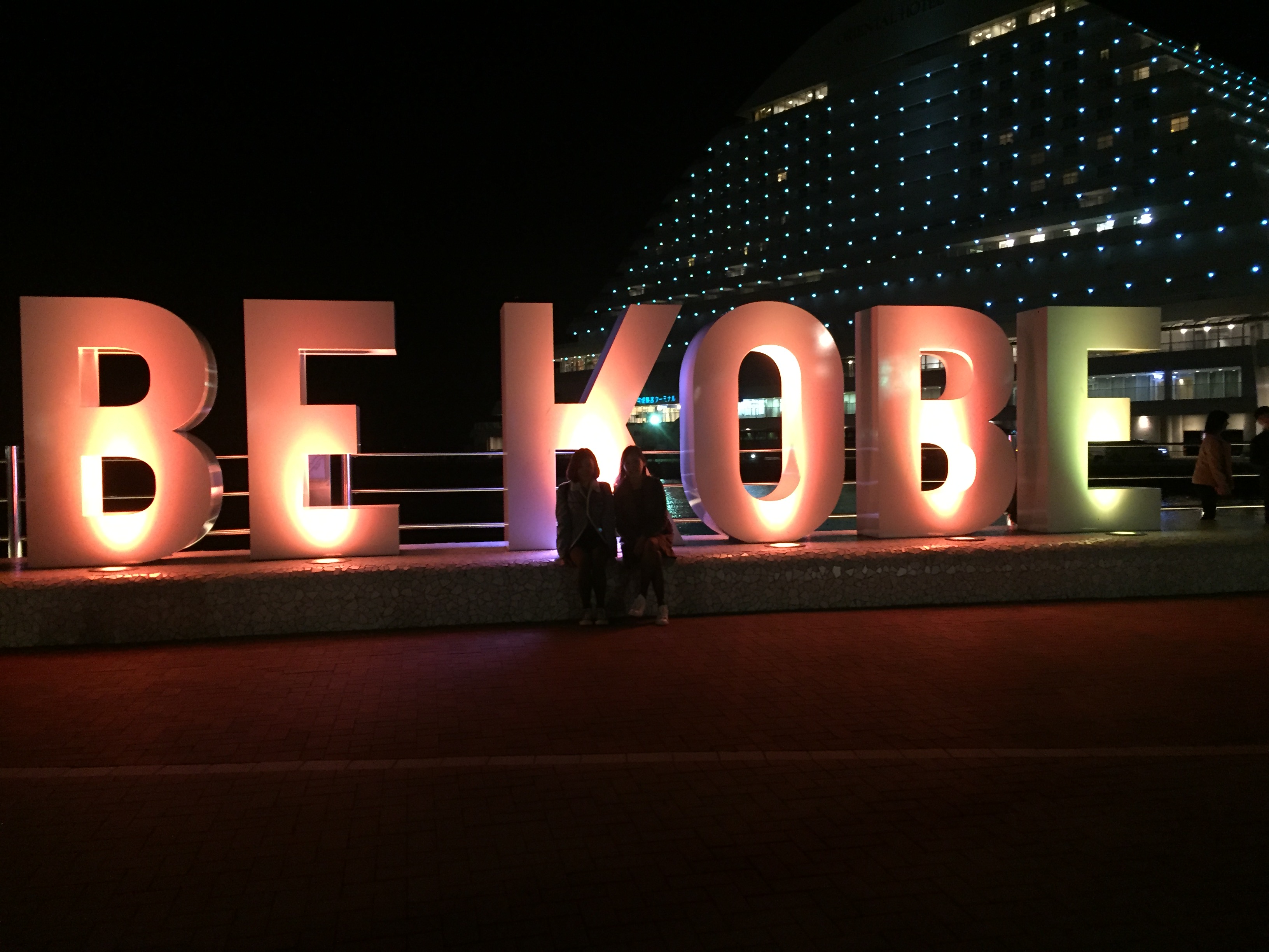 해가 저물고 나니 BE KOBE 앞에 한산하길래 지나가는 행인에게 부탁해서 우리도 사진을 남겼다.