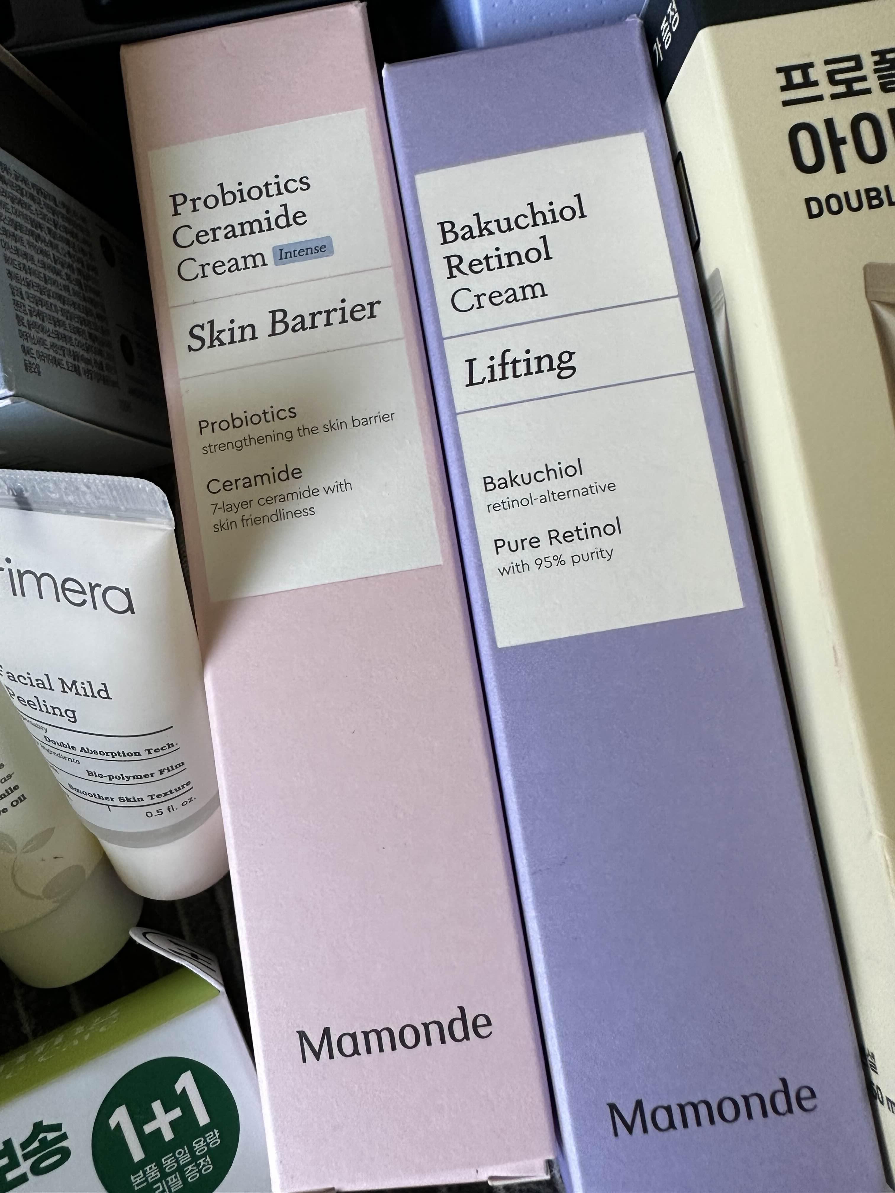 원래 마몽드 무궁화크림을 좋아해서 갈 때마다 사오거나 부모님께 부탁해서 우편으로 받았었는데 어느새 없어졌다...? 대신 새로 나온 거 같은 프로바이오틱스 크림이랑 바쿠치올 레티놀 크림을 하나씩 사왔다. 밤에는 랑콤 레네르지 나이트크림을 바르고 있어서 데이타임용으로 바르면 좋을 것 같다. 짜서 쓰는 타입이라 쓰기도 편리할 듯.