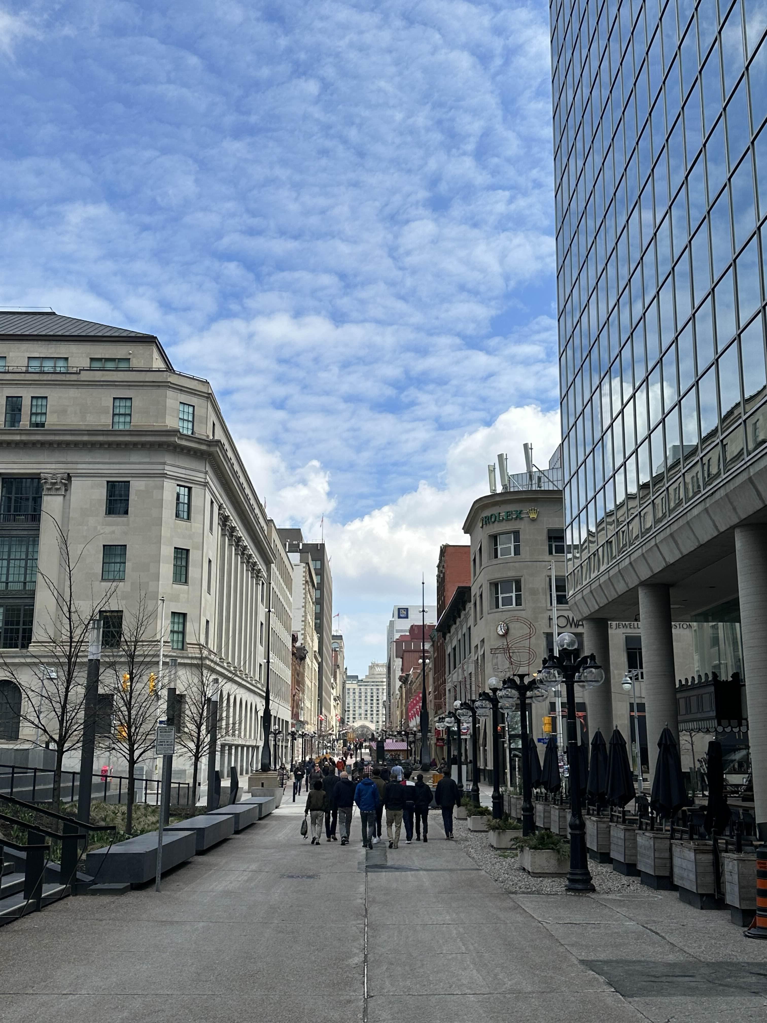 더이상 볼 게 없어서 다운타운으로 건너왔고 아직 점심시간 전이라 거리가 한산했다. 4월 말 오타와는 여전히 그늘 아래에 있으면 쌀쌀했다.
