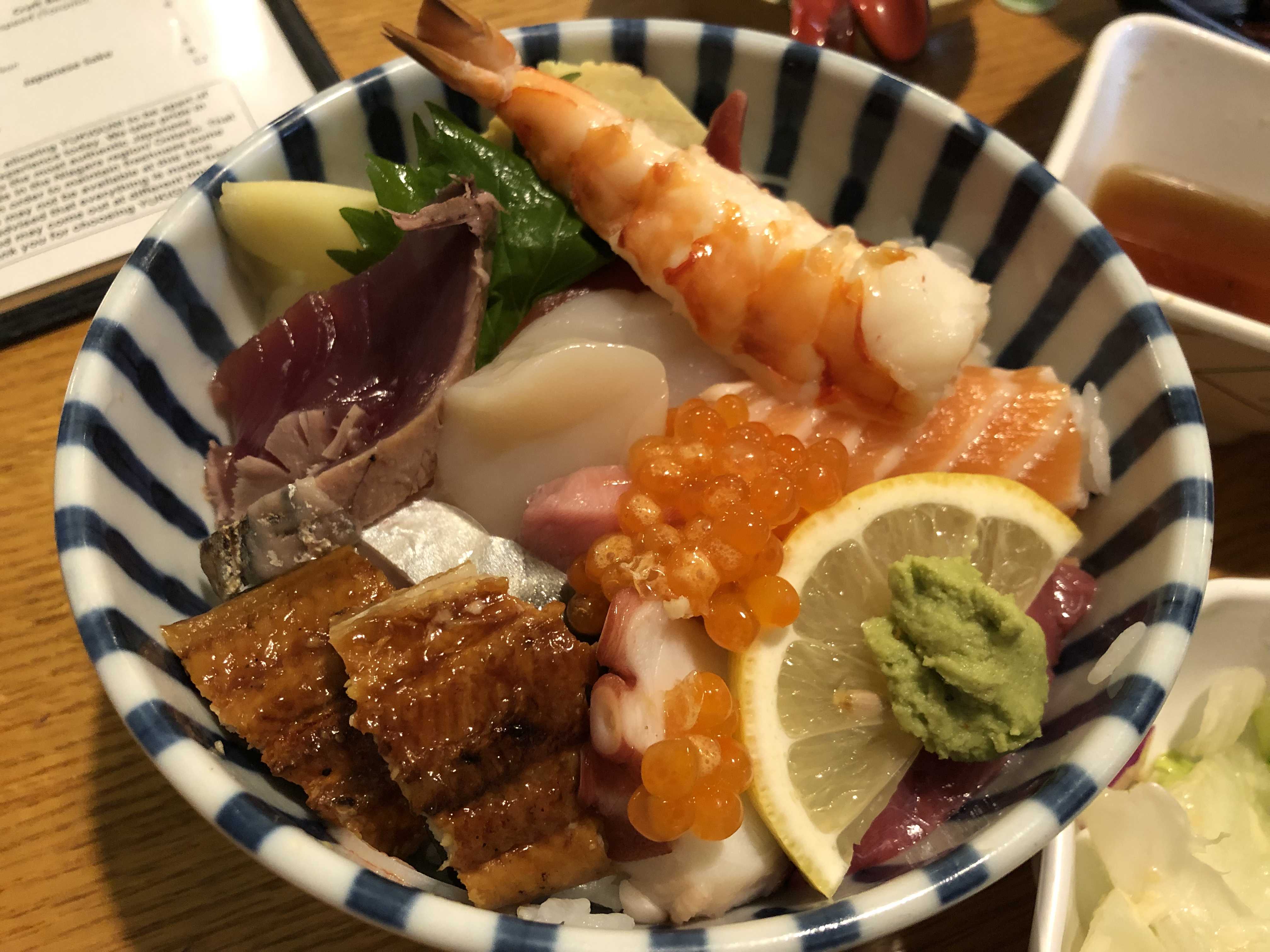 보통 사시미가 먹고 싶으면 사시미 디너로 밥과 사시미를 따로 먹을 수 있게 시키는데, 여기는 미리 찾아본 리뷰에서 치라시동이 잘 나오는 것 같아서 시켜봤다. 23불 정도였던 것 같은데 정말 그 가격에 말도 안되는 퀄리티. 토론토였으면 33불이라도 감사히 사 먹었을 퀄리티이다.